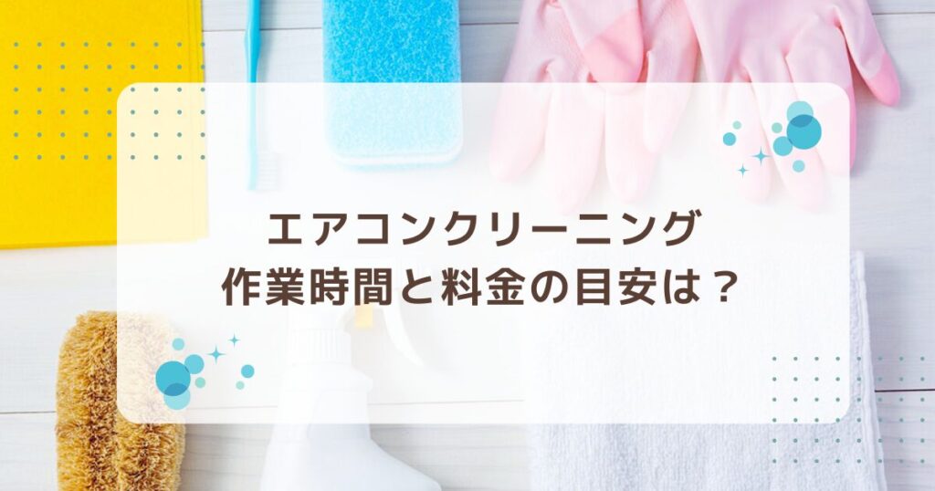 エアコンクリーニングを依頼しようと思ったとき、「どのくらい時間がかかるのだろう」「料金はいくらくらいなのか」と気になりますよね。特に初めて依頼する場合は、作業の流れや所要時間がわからないと、予定が立てにくいものです。この記事では、エアコ...